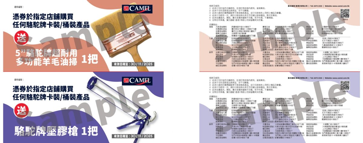 3. 此券只適用於購買駱駝牌卡裝或桶裝產品,並只可換領券上列明之禮品及數量。